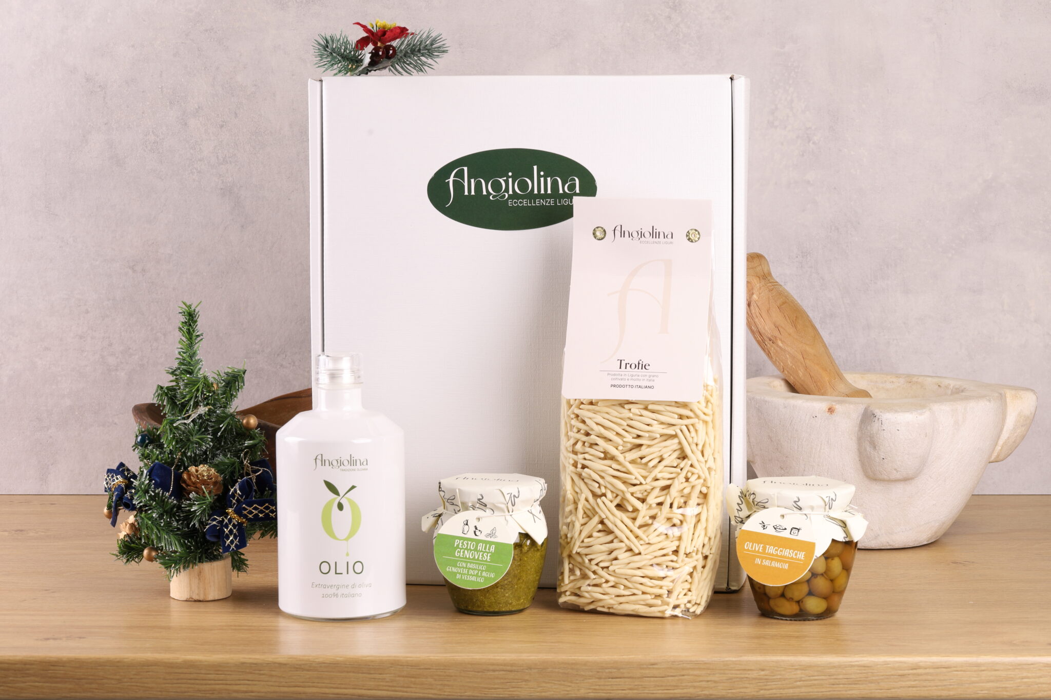 Scopri le nostre confezioni regalo con prodotti tipici liguri, una selezione di prelibatezze gastronomiche come pesto genovese, focaccia, olive taggiasche, sottoli, pasta ligure. Il regalo perfetto per ogni occasione!
